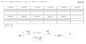 4. 解けた問題を集計し、IQテストの結果を出しましょう。(集計方法、正確な数値の出し方は後述します。